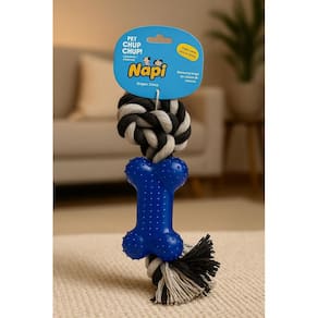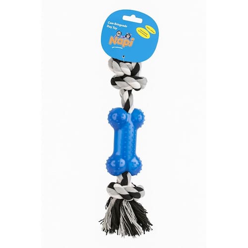 Brinquedo pet para cães com corda e mordedor forte Proporcione mais diversão, bem-estar e saúde para o seu pet com o brinquedo interativo pet chup chup da marca napi. Desenvolvido especialmente para cães de todos os portes, este brinquedo combina dois elementos fundamentais para a saúde bucal e o entretenimento dos pets: corda de trançado resistente e mordedor em formato de osso com textura massageadora. O brinquedo é composto por uma corda grossa, feita em algodão trançado de alta resistência nas cores preto, branco e cinza, ideal para brincadeiras de puxar, morder e estimular o instinto natural de caça dos cães. Na extremidade inferior, conta com um osso de borracha azul texturizado, que serve como mordedor. Essa superfície com relevos ajuda a massagear a gengiva, auxiliar na limpeza dos dentes e contribuir para a saúde bucal do animal. Produto fabricado com materiais duráveis, pensado para suportar mordidas e garantir maior durabilidade, mesmo com uso frequente. Além disso, o brinquedo é uma excelente forma de evitar o , ansiedade e o tédio nos momentos em que o pet está sozinho, promovendo uma rotina mais ativa e saudável. Benefícios: Estimula o instinto natural de mastigação e caça; Ajuda na limpeza dos dentes e saúde das gengivas; Ideal para brincadeiras interativas e exercícios físicos; Ajuda a evitar comportamentos destrutivos; Indicado para cães de pequeno, médio e grande porte; Material resistente e seguro para o pet; Pode ser utilizado em atividades de adestramento. Especificações técnicas: Marca: napi Modelo: pet chup chup Material: corda de algodão trançado e borracha termoplástica Cor: corda preto, branco e cinza mordedor azul Indicação: cães de todos os portes Origem: china Tamanho aproximado: 23 cm de comprimento Marca: Não Informado