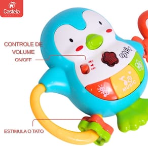 Brinquedo pianinho musical pinguim com luz e som - castela Cor: multicolorido Descrição do produto