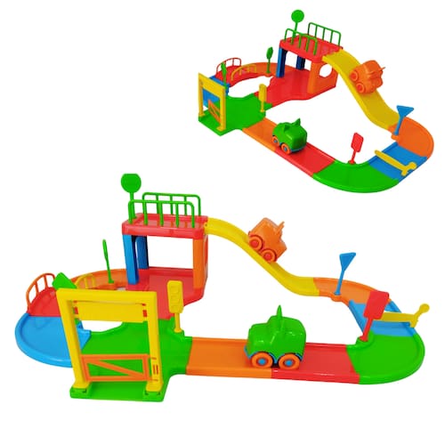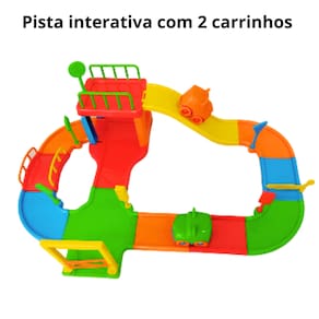 Além de divertir a criança, a Pista Baby Animal auxilia na habilidade manual, estimula a imaginação, a criatividade e o desenvolvimento sensorial. A brincadeira começa desde a montagem da pista, com peças de encaixar coloridas formam a pista completa com rampa, ponte, cruzamento, curvas, entrada, cancela, garagem, semáforo, plaquinha de transito, dois carrinhos baby e muita brincadeira! A pista pode ser montada/desmontada várias vezes. O brinquedo é fabricado em material atóxico (Polipropileno) e de grande resistência a quedas, batidas ou impactos. Contém selo de segurança da INMETRO.