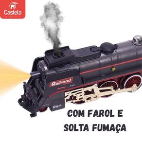 Brinquedo Pista e Trem com Luz e Fumaca CBS0675 - Castela DESCRIÇÃO DO PRODUTO A Pista de Trem com Luz, Som e Fumaça da Castela é pura diversão para a criançada Com trilhos que formam um circuito de 138 cm x 99 cm, o trem se movimenta soltando fumaça real, acompanhado de luzes e sons que deixam a brincadeira ainda mais envolvente. Ideal para estimular a criatividade, a imaginação e o aprendizado lúdico.