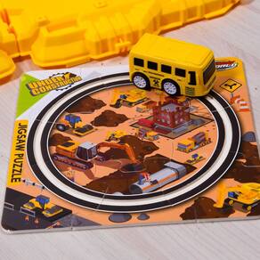 Brinquedo Pista Quebra-Cabeça 3 em 1 com Carrinho a Corda Amarelo -