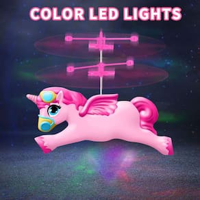 - Flying Unicorn for Kids 6+: Unicórnio voador super legal com controle remoto para crianças! Esperamos que as crianças mais novas possam experimentar a diversão de voar. Para reduzir os danos da hélice à criança, tornamos o corpo do unicórnio do plástico fino e leve. Dessa forma, a velocidade de rotação da hélice é reduzida, ela é desligada automaticamente quando a hélice fica presa. Mais seguro para crianças. Basta controlar o brinquedo unicórnio para voar com o controle remoto. Ótimo para iniciantes e profissionais.
