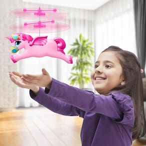 - Brinquedos voadores com controle remoto: ligue o interruptor, o unicórnio voador começará a voar automaticamente em 2 ou 3 segundos. A criança só precisa soltar a mão e soltar a bola voadora unicórnio. Quando o unicórnio voar alto, ela pode controlar o brinquedo voador operando o controle remoto para fazê-lo voar bem. É realmente um brinquedo voador RC mágico e realmente voa no céu. Todas as crianças mais velhas e até adultos se divertirão voando nele.