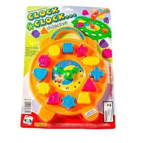 Relógio Educativo Didático Clock Clock Pica Pau O relógio didático clock clock proporciona além de ensinar a criança a ver as horas, possui peças de encaixe com formas, desenvolvendo a coordenação motora, aprendizado de formas, cores, números e noção de dentro e fora.