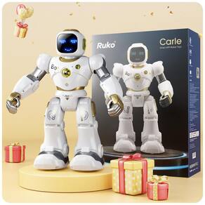 Sobre este item 4 maneiras de controle para diferentes idades O robô inteligente Ruko Carle pode trabalhar através do aplicativo de telefone, controle remoto, comando de voz, sensor de gravidade de maneira fácil e adequada, o que se adapta a diferentes idades e também enriquece a mente do seu filho com os diferentes desafios interativos, como um grande companheiro