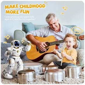 Simule o desempenho humano perfeitamente O rosto do LED varia em diferentes emojis para expressar seus sentimentos 9 motores poderosos garantem o robô para ações complicadas sem problemas este robô interativo responde ao tocar sua cabeça, simula bem as ações humanas e promove a interação com seus filhos, o que pode despertar a curiosidade do seu filho para interagir com o robô.