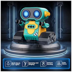 O Robô Multifuncional é uma incrível opção de entretenimento! Seus olhos grandes e engraçados se acendem assim que você liga o robô, proporcionando uma aparência adorável, principalmente à noite. Este robô é capaz de cantar diferentes músicas com um botão musical. No modo de demonstração, ele fará giros de 360 graus, dançando com braços flexíveis. Além disso, possui vários modos de luz nos olhos que mudam automaticamente, tornando-o muito fofo. Com um design único e divertido, este robô possui uma aparência encantadora, com grandes olhos engraçados e braços flexíveis. Você até pode colocar algo em suas mãos para deixá-lo ainda mais legal! As rodas grandes e duráveis permitem que o robô se mova para frente, para trás, para a esquerda e para a direita com facilidade. As canções vão encantar seu bebê. Combinando uma aparência fofa, belos olhos grandes, membros flexíveis e uma função de voz inteligente, seu bebê vai adorar este robô. O Sensor de Gestos permite uma interação divertida! Ao pressionar o botão de gestos no controle, o robô entra no modo de sensor de gestos. Coloque a mão na frente do robô e mova-a, o robô irá se mover. Se você retirar a mão, o robô irá segui-la; se você mover a mão ao redor do robô, ele irá girar junto. Muito interessante! Essa funcionalidade vai despertar bastante o interesse das crianças. Fácil de operar, com controle remoto de 2,4GHz, as crianças podem controlar facilmente o robô para se mover e dançar. O robô ainda emite sons engraçados de vez em quando para fazer as crianças rirem. É possível pressionar o botão do olho LED por mais tempo para alternar automaticamente entre os modos de luz nos olhos. Ideal para crianças de 3 anos ou mais, este Robô Hamourd é um presente perfeito para aniversários, Natal ou festivais. Mais do que apenas diversão, este brinquedo é educativo e uma opção melhor do que um robô-cachorro. Além disso, a embalagem é exquisita e inclui: 1 robô controlado por controle remoto, 1 controle remoto, 1 chave de fenda, 1 manual do usuário e pilhas para o controle.