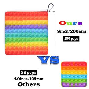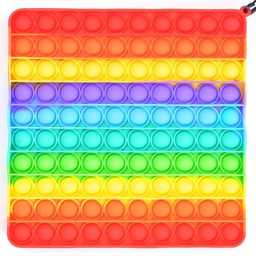 Brinquedo sensorial Push Pop Bubble Fidget de tamanho grande para crianças e adultos Brinquedo sensorial de compressão de silicone Brinquedo de silicone 100 bolhas quadradas (arco-íris)