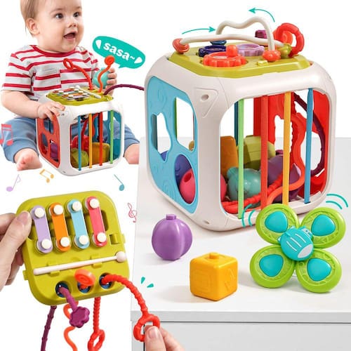 -?Presentes educacionais precoces?Este cubo de atividades para bebês pode aprender enquanto brinca e é ótimo para bebês que precisam de educação sobre o desenvolvimento precoce. Adequado para presentes de nascimento, aniversário, festival e Natal de recém-nascidos.