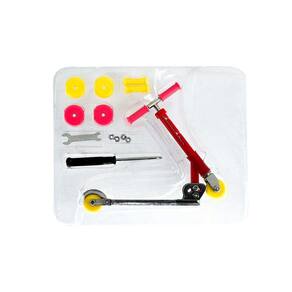 Contém: 01 patinete de dedo, 02 manoplas, 04 rodas, 04 porcas e 02 ferramentas especiais de brinquedo.