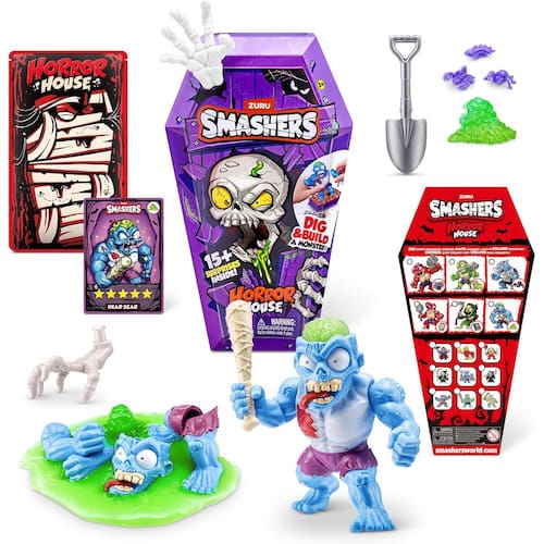 O Smashers Horror House da marca Fun é um brinquedo surpresa interativo que transforma a brincadeira em uma experiência cheia de mistério e diversão. A criança deve escavar, montar e descobrir os itens escondidos dentro da casa assustadora, revelando um monstro exclusivo e diversos acessórios.