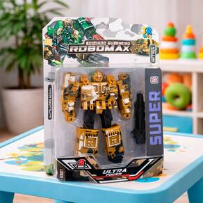 Brinquedo Soldado Robô Acessórios Transforma Carro Militar Amarelo -