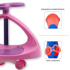 Características Principais: - Estímulo ao Desenvolvimento Motor: Ideal para ajudar no desenvolvimento de habilidades importantes como equilíbrio e coordenação motora. - Material Resistente e Seguro: Feito de plástico e ferro de alta qualidade, garantindo durabilidade e segurança para as crianças. - Luzes de LED: As rodas são equipadas com luzes de LED, aumentando o fascínio e tornando a brincadeira ainda mais atraente. - Fácil de Operar: Simples de usar, basta que a criança suba no carrinho, coloque os pés nos apoios e comece a se mover para sentir a emoção. - Design Atraente: Com uma combinação encantadora de cores Rosa e Roxo, este carrinho é um verdadeiro convite à diversão. - Adequado para Crianças de 3 a 10 Anos: Suportando até 35 kg, é perfeito para uma ampla faixa etária.