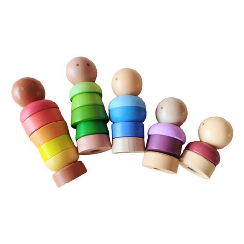 este é um conjunto de 5 bonecos da família em que todos possuem um pino com rosca ("esqueleto") fixo na cabeça, para girar e rosquear peças coloridas (as "roupas") em ordem crescente de peças (3, 4, 5, 6 e 7) por pessoa, totalizando 25 peças antes de montar. as peças podem ser montadas e remontados diversas vezes e misturadas, como uma troca de roupas. este brinquedo ajuda no desenvolvimento da concentração, da criatividade e da coordenação motora.