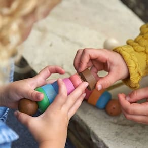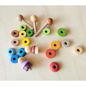 473nç40: o brinquedo é de madeira porém não é inquebrável, ao iniciar o rosqueamento de cada peça, ensine a criança a encaixar e girar tal que não seja muito "duro". se não "fluir" no início, tentar voltar e encaixar até dar certo, não forçar muito pois isso pode danificar os filetes das roscas.