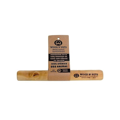 Brinquedo Sustentável Rústico Woodn Pets Amicus Médio - Indicado para cães; - Sacia a vontade de morder; - Feita com madeira de café; - Promove a limpeza dos dentes. O Brinquedo Sustentável Rustico Woodn Pets Amicus ajuda no enriquecimento ambiental e ainda sacia a vontade natural do seu cão de roer. Feito com madeira de café o brinquedo pode ser engolido e digerido sem nenhum dano a saúde do bichinho. O brinquedo auxilia na vontade natural do cão de morder e roer ajudando a combater ansiedade e estresse. Além disso, mastigar madeira de café solta pequenas fibras que têm um efeito adicional de limpeza e fio dental nos dentes. Medidas aproximadas Tamanho M: Altura: 4cm Largura: 20cm Profundidade: 4cm Composição Madeira do café