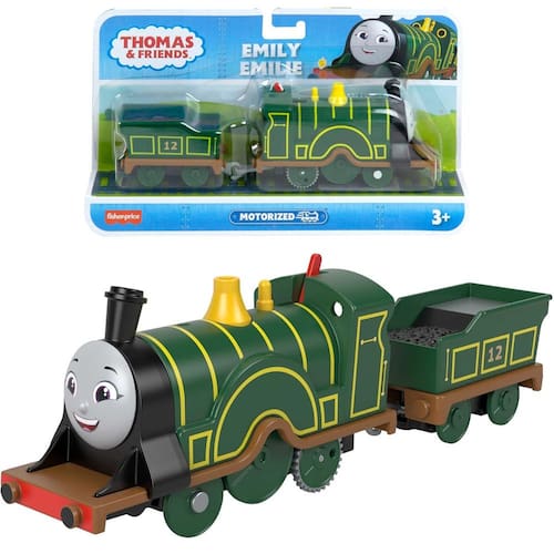 Thomas & Friends Trem de brinquedo motorizado Emily Motor a bateria com carrinho para brincadeira de faz de conta para crianças em idade pré-escolar a partir de 3 anos