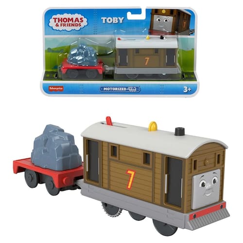 Thomas & Friends Trem de brinquedo motorizado Toby Motor a bateria com carrinho para brincadeira de faz de conta para crianças em idade pré-escolar a partir de 3 anos