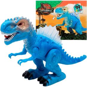 Brinquedo Tiranossauro Rex Dino Com Luz LED Movimentos Sons Azul -