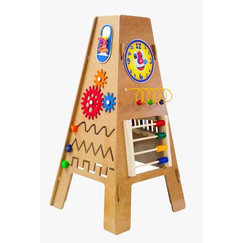 é um brinquedo interativo que ajuda a estimular o desenvolvimento motor, viso motor, orientação espacial, concentração, raciocínio lógico, correspondência de formas e cores, criatividade e socialização.