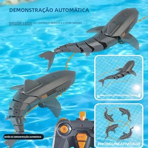 O brinquedo simula um tubarão real, com articulações móveis que criam movimentos ágeis, rápidos e flexíveis na água. Seu design aerodinâmico reduz o arrasto, proporcionando uma experiência de natação suave e divertida. Controle sem interferências – O transmissor de 2,4 GHz permite competições com vários jogadores ao mesmo tempo.Leve e à prova d’água – Construído em material ABS resistente e impermeável, garantindo durabilidade e liberdade para nadar em diferentes ambientes.Movimentos realistas – Diferentes ângulos das articulações fazem o tubarão nadar por trajetórias variadas, despertando a curiosidade das crianças.Diversão em qualquer lugar – Ideal para piscinas, banheiras, rios, parques aquáticos e muito mais!