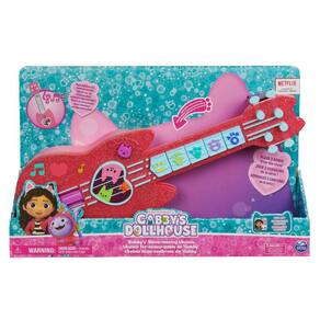 Brinquedo ukulele casa da gabby dollhouse com som infantil Cor: colorido Toque músicas com o ukelele da gabby. Aperte o botão kitty e cada uma das patas do gatinho nos trastes desta guitarra infantil, para percorrer 3 músicas, como o tema gabby's dollhouse, efeitos sonoros musicais e acordes de guitarra.