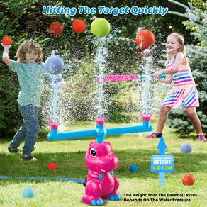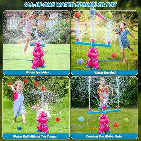- Brinquedo de beisebol 4 em 1 – Este irrigador de água de dinossauro combina as funções de um irrigador de água, bola de água e respingo de beisebol para uma experiência de jogo variada e interativa. As crianças podem desfrutar do frescor refrescante do irrigador, jogar jogos interativos de bola de água ou praticar seu swing de beisebol. Enquanto isso, as colunas de alto spray em ambos os lados simulam a emocionante experiência de passar por um portão de água, aumentando a emoção da hora de brincar