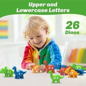 Brinquedos didáticos para crianças de 2 a 4 a 5 anos, brinquedos didáticos do alfabeto de dinossauro com maiúsculas e minúsculas, atividades educacionais pré-escolares, brinquedos a motor finos Montessori para crianças com mais de 18 milhões de anos, presente para meninos e meninas