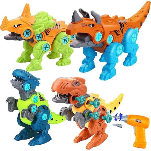 4PCS DINOSAUR TOYS AND ELECTRIC SCREWDRIVER 4 brinquedos de dinossauro incluem Tyrannosaurus Rex, Triceratops, Centrosautus, Velociraptor, podem ser desmontados e montados. Deixe as crianças aproveitarem a diversão de construir dinossauros CHAVE DE FENDA ELÉTRICA ANALÓGICA DE DUAS VIAS Simulação bidirecional de baixa velocidade Chave de fenda elétrica, ela irá parar automaticamente ao encontrar obstáculos, não se preocupe com crianças feridas. 2AA pilhas (não incluídas) FUN BUILDING DINOSAURS GAMES A cabeça, mãos, pés e boca de dinossauros pode ser movido para formar várias poses de luta interessantes, Deixe as crianças aprenderem sobre o mundo dos dinossauros. Desenvolva a capacidade prática e a capacidade de aprendizagem das crianças, QUALIDADE SEGURA E PREMIUM Nossos blocos de construção de dinossauros são todos feitos de plástico de alta qualidade, não tóxico e inodoro, sem bordas ásperas e leves, fáceis de segurar e manusear, mesmo para mãos pequenas de crianças. Cada dinossauro é embalado individualmente para evitar arranhões. DIY DINOSAUR TOYS PERFECT EDUCATIONAL STEM TOYS FOR KIDS Fácil de montar, brinquedos de dinossauro são presentes perfeitos para crianças, adequados como presentes de aniversário e Natal, enchimentos de cesta de Páscoa, enchimentos de meias de Natal, recompensas de atividades escolares, decorações de festas, etc. também um brinquedo educativo pré-escolar perfeito para fortalecer a coordenação olho-mão do seu filho e o desenvolvimento inicial do cérebro.