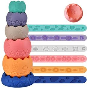 Brinquedos de empilhamento de bebê para bebês 6 9 12 18 meses, blocos de bebê empilháveis sensoriais Soft Toys, mordedor de bebê de silicone mastigar blocos de empilhamento, Montessori Educacional brinquedos de 1 ano para meninos e meninas crianças