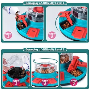 - ??🐶🐱?Alimentador lento de longa duração?O espaço de armazenamento de ração para cães no meio é grande o suficiente para armazenar pelo menos 300 gramas de ração para cães, e o tempo de alimentação lenta é longo o suficiente, até 30 minutos.