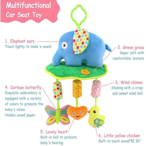 Brinquedos de assento de carro para bebês - Este brinquedo infantil vem com um clipe, que pode ser preso a um carrinho, assento de carro ou berço, brinquedo de carrinho, brinquedo de assento de carro de bebê, brinquedo de suspensão de academia de bebê, é muito fácil de pendurar ou remover. Brinquedo Musical Stroller Rattle - O sino de vento embutido nos brinquedos da cadeirinha de carro produz um som suave e confortável, agitando suavemente, o que promove o desenvolvimento saudável da audição do bebê. Brinquedos sensoriais para bebês - Quando os pais brincam com bebês, pode melhorar a diversão, ajudar a estimular os músculos do bebê e desenvolver a coordenação do cérebro da boca dos olhos da mão do bebê também. Presente para brinquedos recém-nascidos - Este brinquedo de atividade bonito para bebês recém-nascidos é perfeito para bebês recém-nascidos ou meninos ou meninas. Muito significativo e decente. Brinquedos de 3 meses de idade para bebês, podem ser s como presentes para o Ano Novo, presentes, Natal ou Dia das Crianças. Brinquedos de berço - Este brinquedo de bebê recém-nascido tem um espelho de descoberta e asas curvas. Quando o bebê o agita, ele fará um som bonito, o que estimulará os sentidos do bebê e fará o bebê feliz.