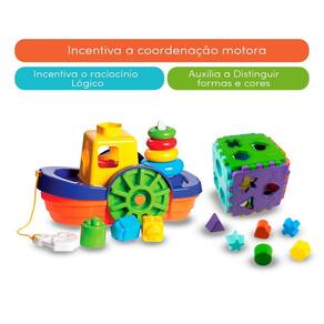 KIT COM 3 BRINQUEDOS: 1 Barco 1 Cubo Didático