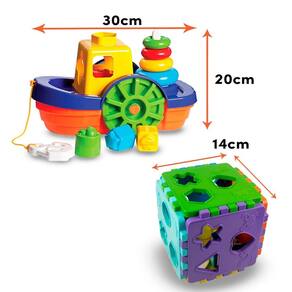 KIT COM 3 BRINQUEDOS: 1 Barco 1 Cubo Didático