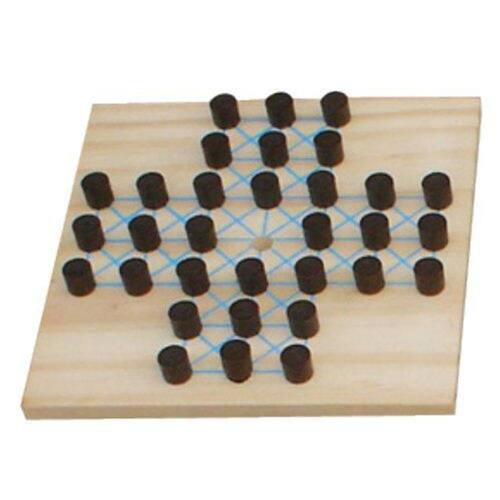 Tabuleiro confeccionado em MDF, medindo 200x200mm, contendo 32 peças em madeira.