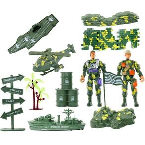 Brinquedos Miniaturas Militares Bonecos Veículos 14 Peças -
