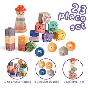-?Conjunto de brinquedos para bebês de valor 4 em 1?Nossos brinquedos Montessori para bebês de 6 a 12 meses, incluindo 6 blocos empilháveis de cores diferentes, 6 brinquedos empilháveis com temas de animais, 7 anéis empilháveis macios e 4 bolas de brinquedo sensoriais. O pacote perfeito para proporcionar inúmeras horas de diversão a um bebê de 6 a 12 meses.