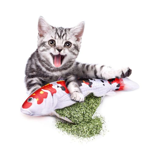 - ??Brinquedos realistas para peixes?: a tecnologia de impressão 3D oferece aos seus gatinhos um peixe real para brincar. Os brinquedos coloridos têm maior probabilidade de inspirar o interesse dos gatos, ao mesmo tempo que o cheiro de videira prateada atrai os gatos para segurá-los, arranhá-los, chutá-los e mordê-los. Desfrute de uma batalha entre peixes e gatos. Mais alegria adicionada à sua família.