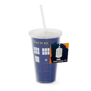 - O copo de plástico reutilizável apresenta a máquina do tempo do Doctor, a TARDIS! Pode ser lavado na lava-louças, não adequado para uso no micro-ondas.