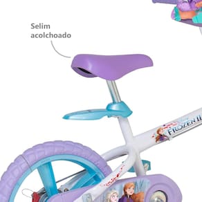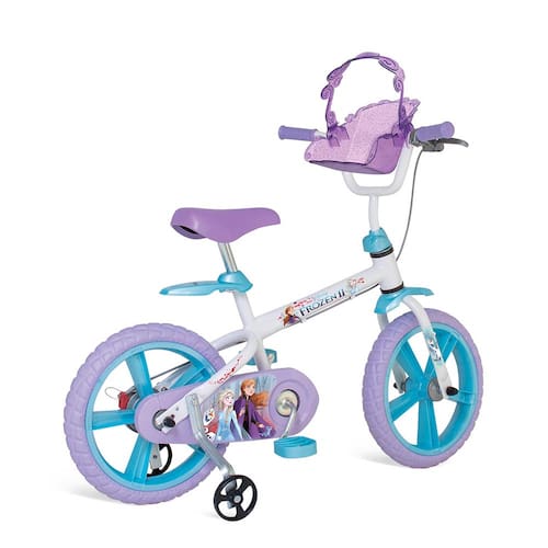 Altas aventuras esperam as crianças com a Bicicleta Aro 14 Bandeirante Frozen II. Ela é confeccionada em aço carbono resistente com decoração moderna da personagem Frozen e muito descolada. Possui rodinhas laterais que auxiliam nas primeiras pedaladas e depois podem ser removidas com facilidade.