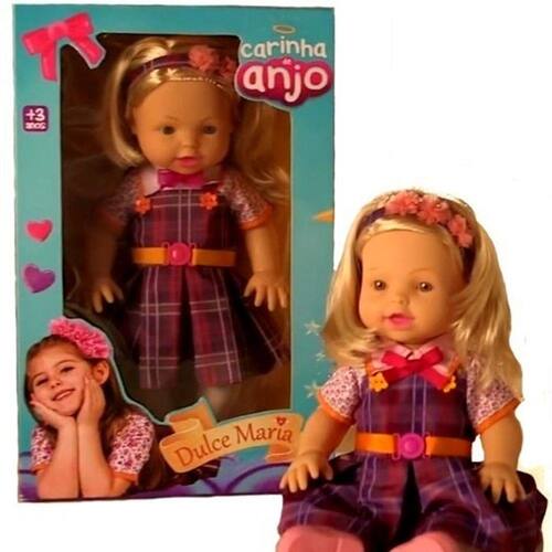 Adquira já a linda Boneca Dulce Maria Carinha de Anjo - Baby Brink, com certeza ela se tornará a companheira da sua pequena, que não irá mais querer largar e vai leva-la para todo lugar! A boneca é confeccionada em vinil super macio e plástico. Mede aproximadamente 40 cm de altura e é muito linda. Exatamente como a querida personagem da novelinha infantil do SBT! A Dulce Maria e a sua pequena se tornarão amigas inseparáveis!