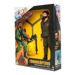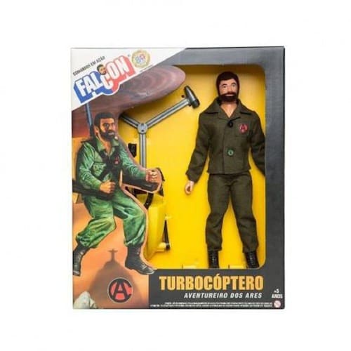 Contém na embalagem: 1 boneco Falcon, 1 blusa, 1 calça, 1 par de botas, 1 hélice e 1 mochila.