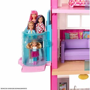 CASINHA DE BONECA - BARBIE DREAMHOUSE - CASA DOS SONHOS DA BARBIE - 70 ACESSÓRIOS - MATTEL: A casinha de boneca Barbie Dreamhouse é o brinquedo perfeito para que sua pequena viva novas aventuras. Com mais de 1,15 m de altura e 1,20 m de largura, a Casa dos Sonhos da Barbie apresenta recursos incríveis para a brincadeira ser completa. São três andares, oito quartos, uma garagem para carro (veículo não incluído) e um escritório em casa, um elevador (funciona de verdade) com espaço para quatro bonecas ou uma Barbie em cadeira de rodas (bonecas não incluídas). A casa ainda dispõe de piscina com escorregado, móveis divertidos transformáveis, luzes, sons e mais de 70 acessórios, incluindo um adorável cachorrinho. As decorações e móveis dos ambientes internos e externos inspiram brincadeiras em todos os ângulos, e as transformações proporcionam diversão 2 e 1. O sofá se transforma em beliches, a mesa de centro vira uma cama para bonecas menores, a lareira se torna um escritório, a geladeira abre as portas, o forno abriga uma churrasqueira nos fundos. Luzes e sons adicionam toques ainda mais realistas a brincadeira (o forno acende e o cronômetro bate, o fogão chia com a frigideira e assobia com a chaleira e o vaso sanitário dá descarga) Há infinitas histórias para contar e maneiras ilimitadas de explorar a vida na Casa da Barbie. Porque com a Barbie tudo é possível. INFORMAÇÕES: - Produto: Casa dos Sonhos da Barbie com Elevador e 70 Acessórios - Marca: Mattel - Coleção: Barbie Dreamhouse - Tipo: Casinha de Boneca com Acessórios - Tamanho: 1,15 m de altura e 1,20 m de largura - Conteúdo: Casa, 70 acessórios que incluem móveis, utensílios domésticos e um cachorro - Recomendação: para crianças a partir de 3 anos de idade ESPECIFICAÇÕES: - Referência: GNH53 - Embalagem (C x A x L): 76 x 76 x 23 cm - Peso (kg): 11,93 - Material /Composição: Plástico - Certificado: CE-BRI/INNAC-00128-04A-NM-300/2002 BENEFÍCIOS DE BRINCAR: 1 - Eleva a autoestima 2 - Estimula o raciocínio 3 - Exercita o imaginário 4 - Desenvolve a criatividade 5 - Promove a socialização e interação 6 - Desenvolvimento neuropsicológico 7 - Estimula habilidades motoras básicas 8 - Incentiva a comunicação e linguagem 9 - Desenvolve aspectos emocionais e afetivos AVISO: - As imagens são meramente ilustrativas - Os pesos e medidas são aproximados - As cores e estampas dos produtos podem ter variações - As informações são de responsabilidade do fabricante ou fornecedor ATENÇÃO: - Comprar Casa dos Sonhos da Barbie com Elevador - Mattel é fácil - Condições de pagamento facilitadas - Entrega para todo o Brasil - Oferta válida por tempo limitado ou enquanto durarem os estoques