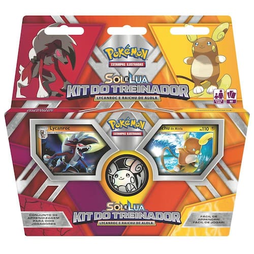 O Deck Pokémon - Kit do Treinador - Pokémon Sol e Lua - Lycanroc e Raichu de Alola da Copag coloca você no jogo já na primeira carta comprada