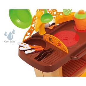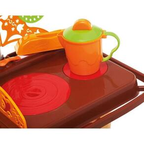 Cheia de estilo e funcionalidades a cozinha do Sítio vai levar as crianças ao verdadeiro faz de contas. A cozinha infantil da Calesita permite que elas criem, simulem e reproduzam situações do dia a dia. O charme do brinquedo fica por conta do fogão com peças de encaixe e a coifa multiuso, nela é possível pendurar os utensílios da cozinha. E para completar a brincadeira, a cozinha acompanha vários acessórios, como panela, frigideira, leiteira, xícaras, facas, garfos, colheres, além de possuir a pia com torneira que sai água de verdade, conta ainda com um forno na parte inferior com gaveta.