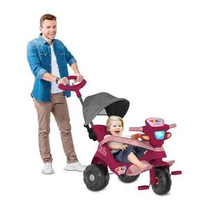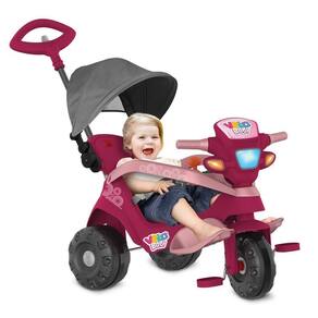 Triciclo Bandeirante C/ Capota Reclinável Velobaby Passeio e Pedal - Rosa