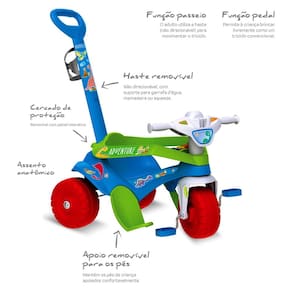 Conheça, o Triciclo Motoka Passeio Adventure, foi desenvolvido pela bandeirante para garantir a diversão dos bebês. Com duas opções de passeio, a criança pode brincar livremente com o triciclo usando o pedal ou com o adulto, usando a haste, não direcionável, para movimentar o triciclo.