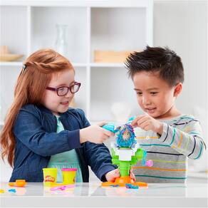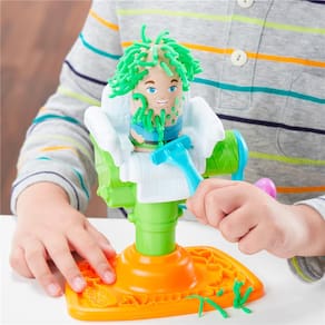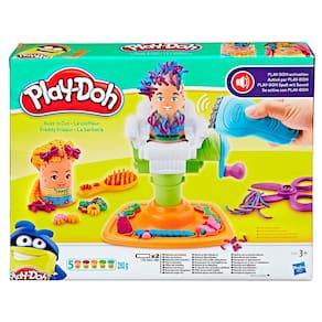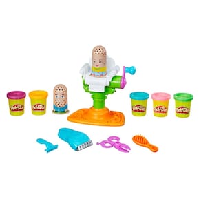 As crianças poderão colocar um dos personagens na cadeira e girar a manivela para fazer crescer barba e cabelos divertidos. O conjunto permite cortar o cabelo ou aparar a barba com o barbeador elétrico, que faz som de verdade ao tocar a massa Play-Doh!