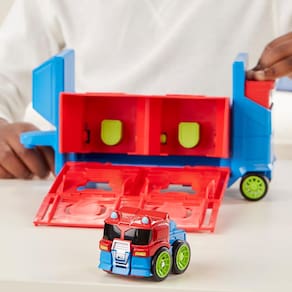 Os jovens heróis estão prontos para o resgate! Com fácil conversão e no tamanho certo para pequenas mãos, o Boneco Transformers Hasbro Carreta-Lançador - Optimus Prime converte-se de veículo a robô e vice-versa em 1 simples passo. E, para aumentar a diversão, a carreta de Optimus Prime converte-se em uma pista de corrida dupla.