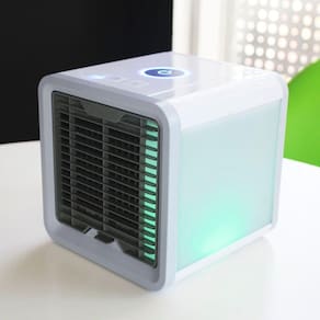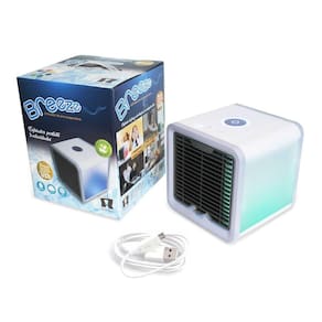 Refrigerador portátil para espaço pessoalEle funciona com águaTem um piscar vermelho quando o tanque de água é baixoBaixo consumo de energiaUsa 10 Watts de energiaTem 3 níveis de velocidadeÉ silenciosoMedições (altura x largura x comprimento): 24 x 19 x 19 cm